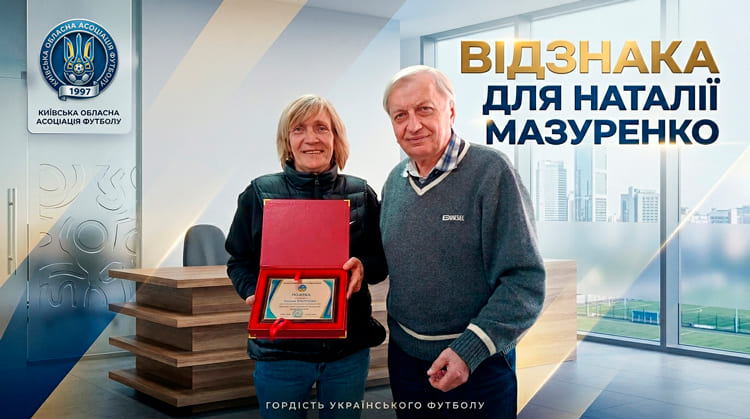 Андрій Засуха, очільник Київської обласної асоціації футболу, нагородив Наталію Мазуренко Почесною подякою за вагомий внесок у розвиток народної гри в Україні. Офіційна церемонія нагородження відбулася в офісі КОАФ — відзнаку вручив Технічний директор Валерій Валерко.