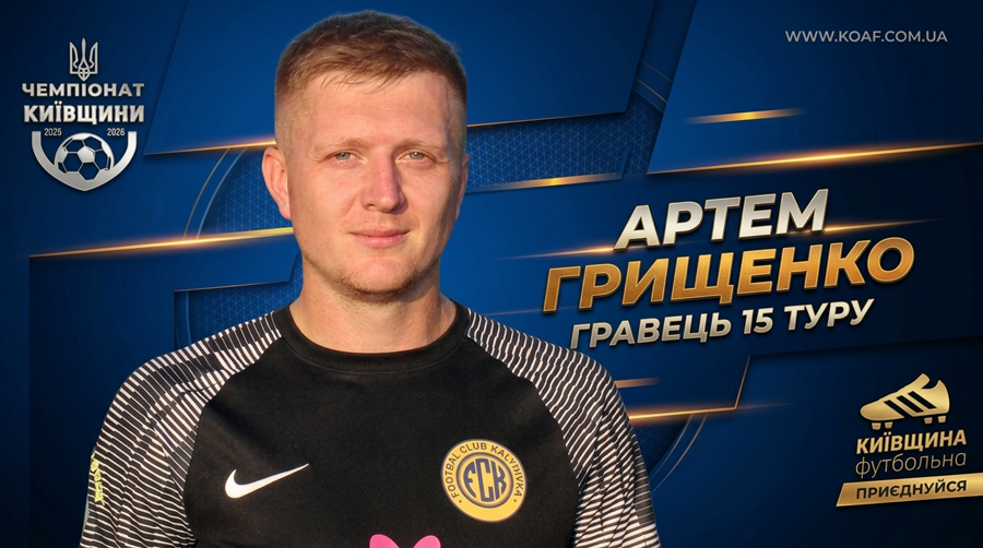 Артем Грищенко, нападник ФК «Калинівка» й основний богатир знакового матчу на «Ювілейному», проголошений Гравцем суботнього змагального дня. Нагадаю, що футболіст-фантазист забив особливо красивий переможний м’яч у протистоянні претендентів на титул.